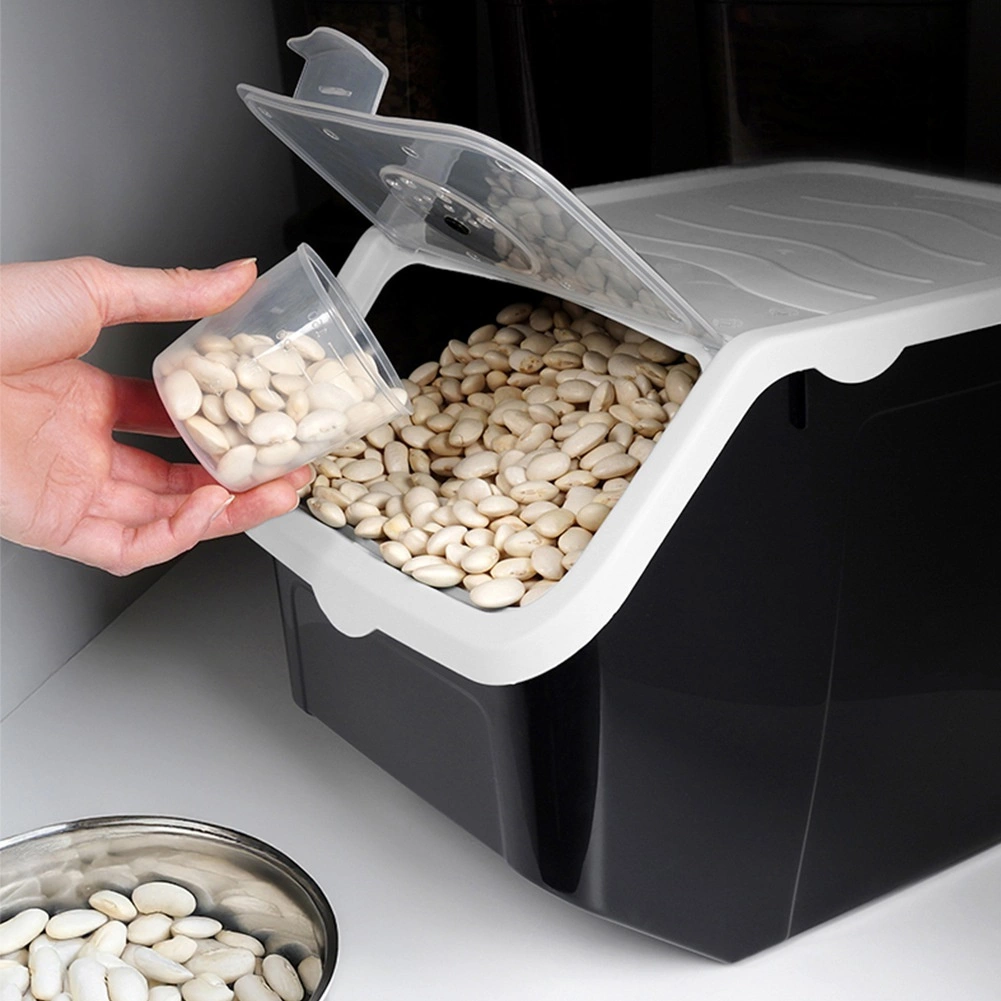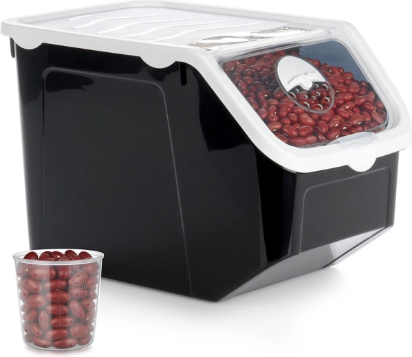Spremnik je idealan za krumpir, luk, češnjak, ali i za tjesteninu, mahunarke, hranu za kućne ljubimce te praškaste mješavine. Kvalitetna plastika bez BPA je sigurna za hranu, pogodna za zamrzivač i perilicu posuđa. Praktična mjerica s oznakom 40–160 ml olakšava precizno doziranje.