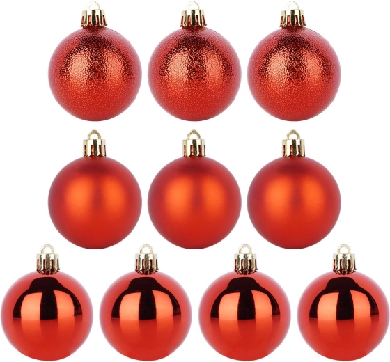 Unesite blagdanski ugođaj u svoj dom uz set od 10 nerazbitljivih božićnih kuglica u elegantnoj crvenoj boji. Kombinacija tri površinske obrade – 3× mat, 4× sjajne i 3× s utisnutom teksturom – daje boru dubinu i stil. Zahvaljujući izdržljivom materijalu, kuglice se pri padu ne razbijaju, pa su idealne za obitelji s djecom i kućnim ljubimcima.