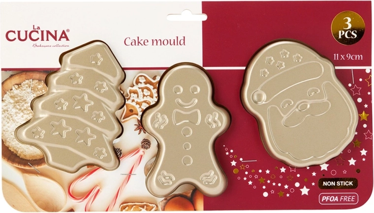 S ovim setom u trenu ćete pripremiti efektne kolačiće, tartlete, mini tortice ili veće kekse. Čelični kalupi s neprianjajućom PTFE obradom sprječavaju lijepljenje i lomljenje tijesta pri vađenju, pa će vaši uradci uvijek biti savršeno oblikovani. Elegantno šampanjsko zlato dodatno će oduševiti svakog ljubitelja pečenja.