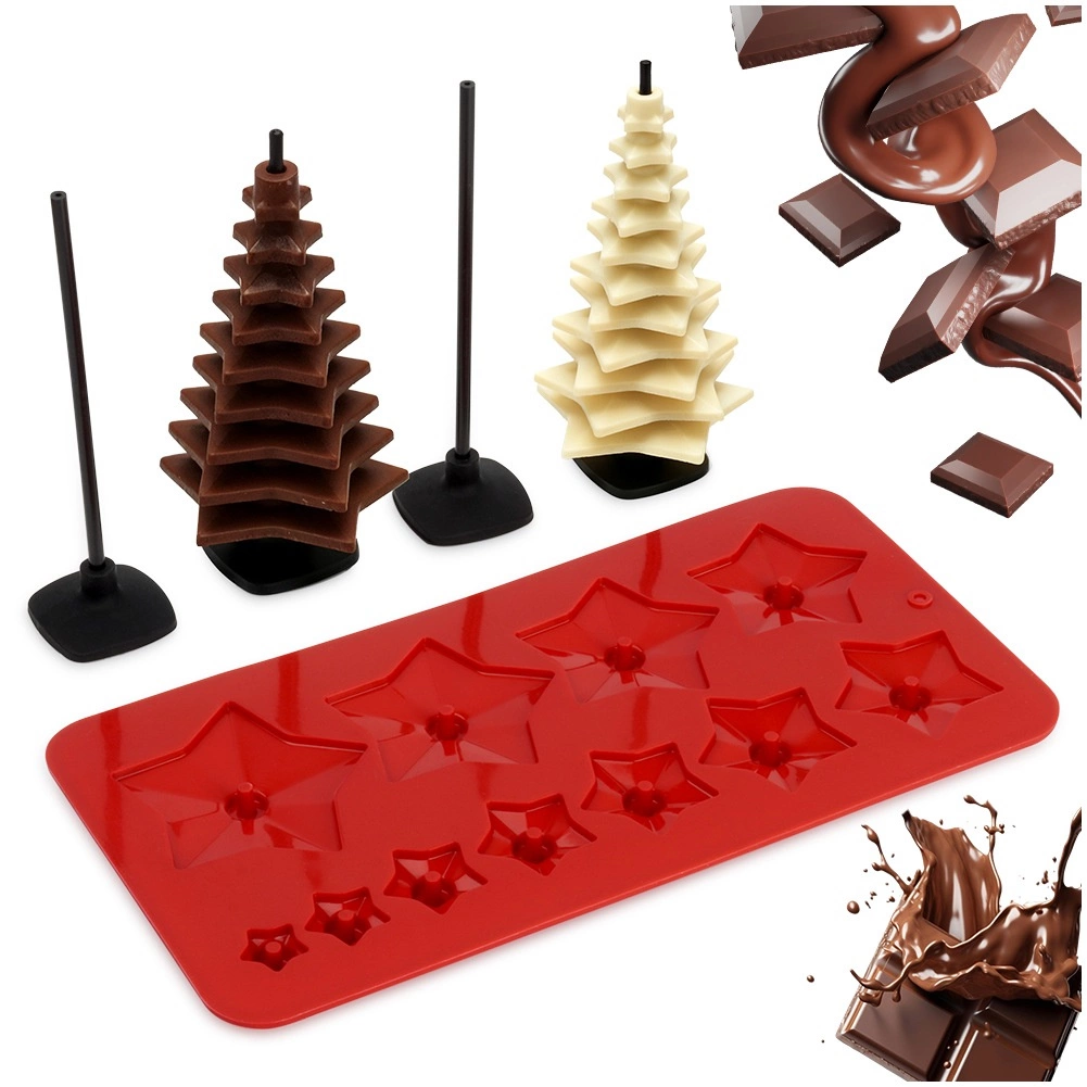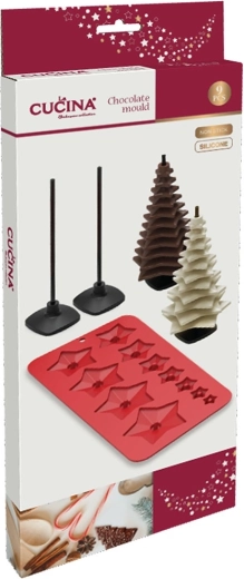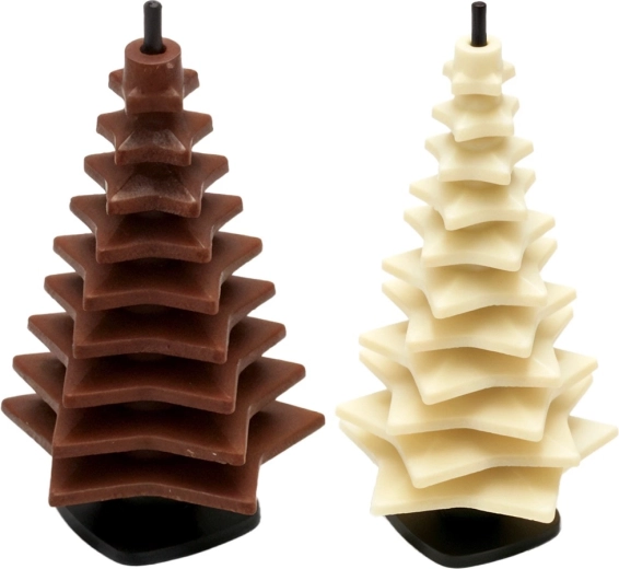 Set uključuje kalup za 11 zvjezdica različitih veličina, 4 štapića (15 cm) kao središte drvca te 4 stabilna silikonska postolja. Pojedine zvjezdice nižu se od najveće do najmanje i stvaraju efektno čokoladno drvce – idealno za blagdansku dekoraciju i jestive poklone.