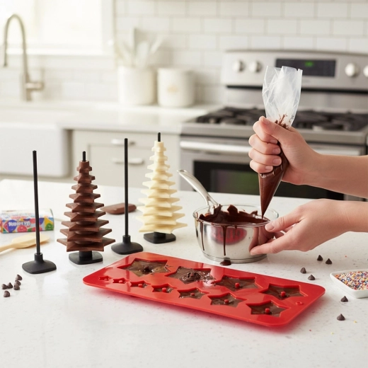 - Silikonski kalup za čokoladu – set za čokoladna drvca