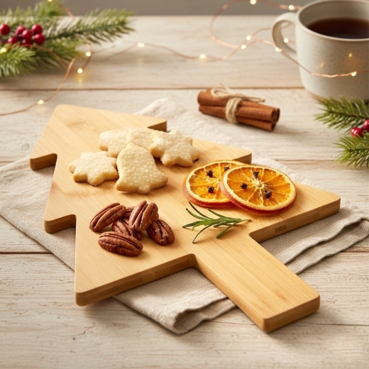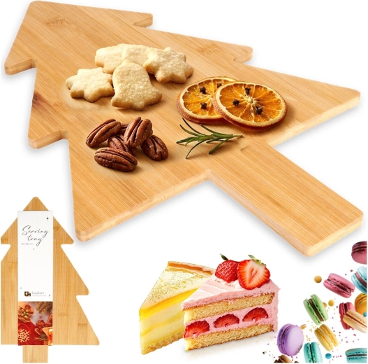 Unesite blagdanski ugođaj na stol s bambusovom daskom u obliku božićnog drvca. Praktična dimenzija 44,5 × 30 cm nudi dovoljno prostora za efektno posluživanje omiljenih delicija, a ujedno je i atraktivan dodatak vašem stolu.