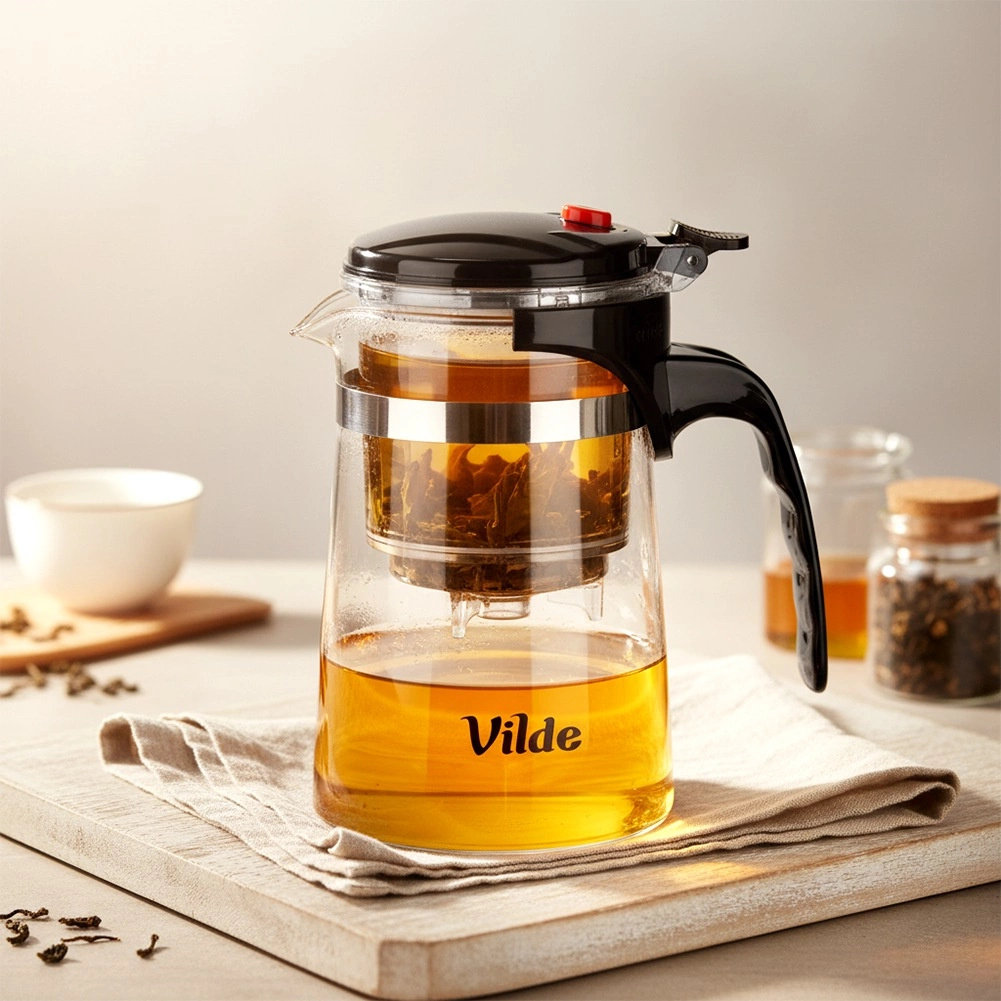Otkrijte kompaktno rješenje za savršen čaj: stakleni čajnik s dvofaznim prešanjem koje maksimalno ističe okus i štedi čajne listiće. Listići se namaču u gornjoj komori gdje precizno kontrolirate jačinu esencije. Jednim pritiskom gumba napitak se otpušta u donji vrč – bez pretakanja i bez nereda.