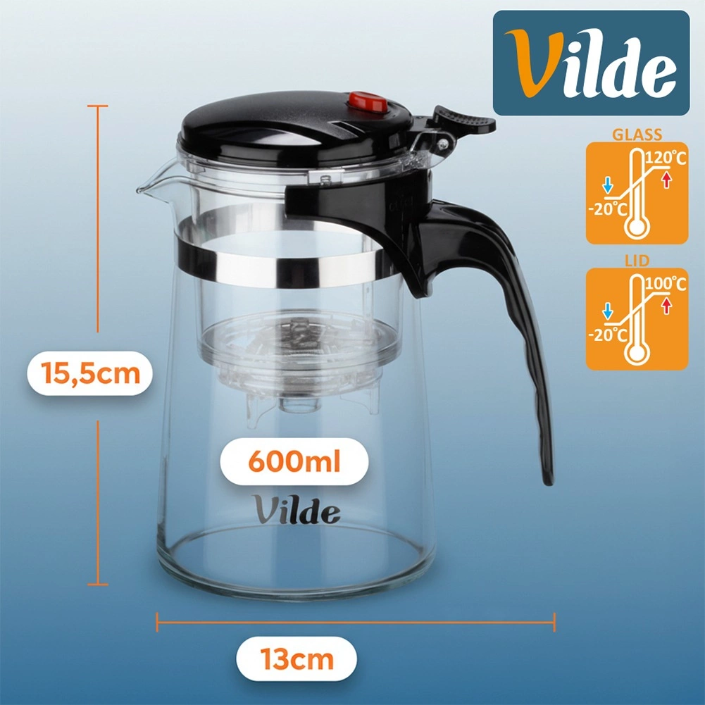 Zahvaljujući borosilikatnom staklu otpornom na temperature od -20 °C do 120 °C, čajnik je prikladan za tople i hladne napitke. Ergonomsko ručko i precizan izljev olakšavaju točenje, a elegantan izgled izvrsno pristaje stolu i za svaki dan i za druženja s gostima.