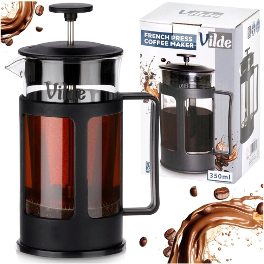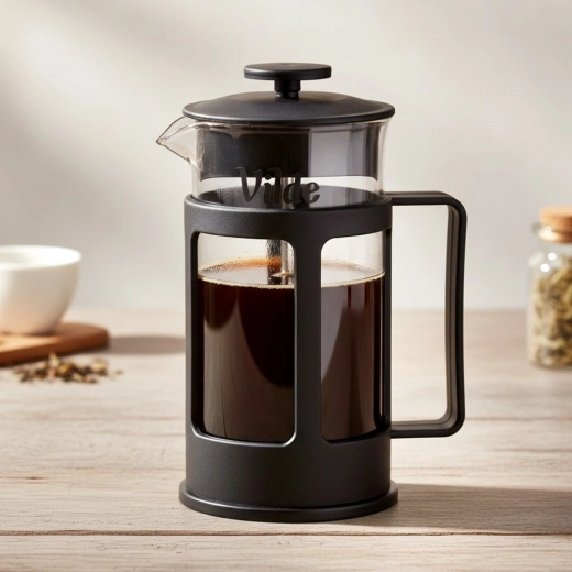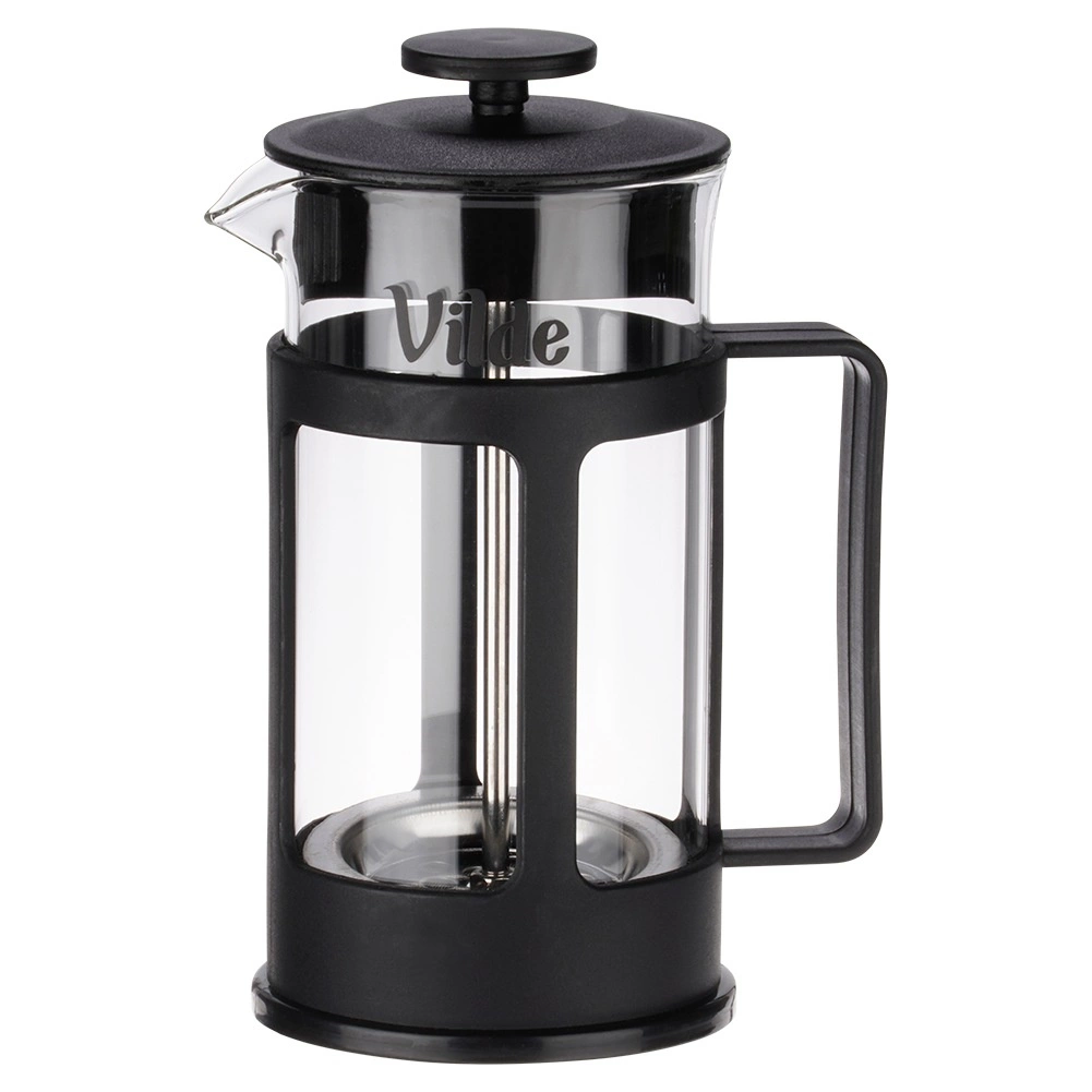 Elegantni i izdržljivi french press za ljubitelje filtrirane kave i rinfuznog čaja. Kombinacija borosilikatnog stakla i nehrđajućeg klipa s finom mrežicom jamči čist napitak bez nečistoća i pun okus. Mat crna čaura s poklopcem daje stil i sigurnost pri rukovanju.