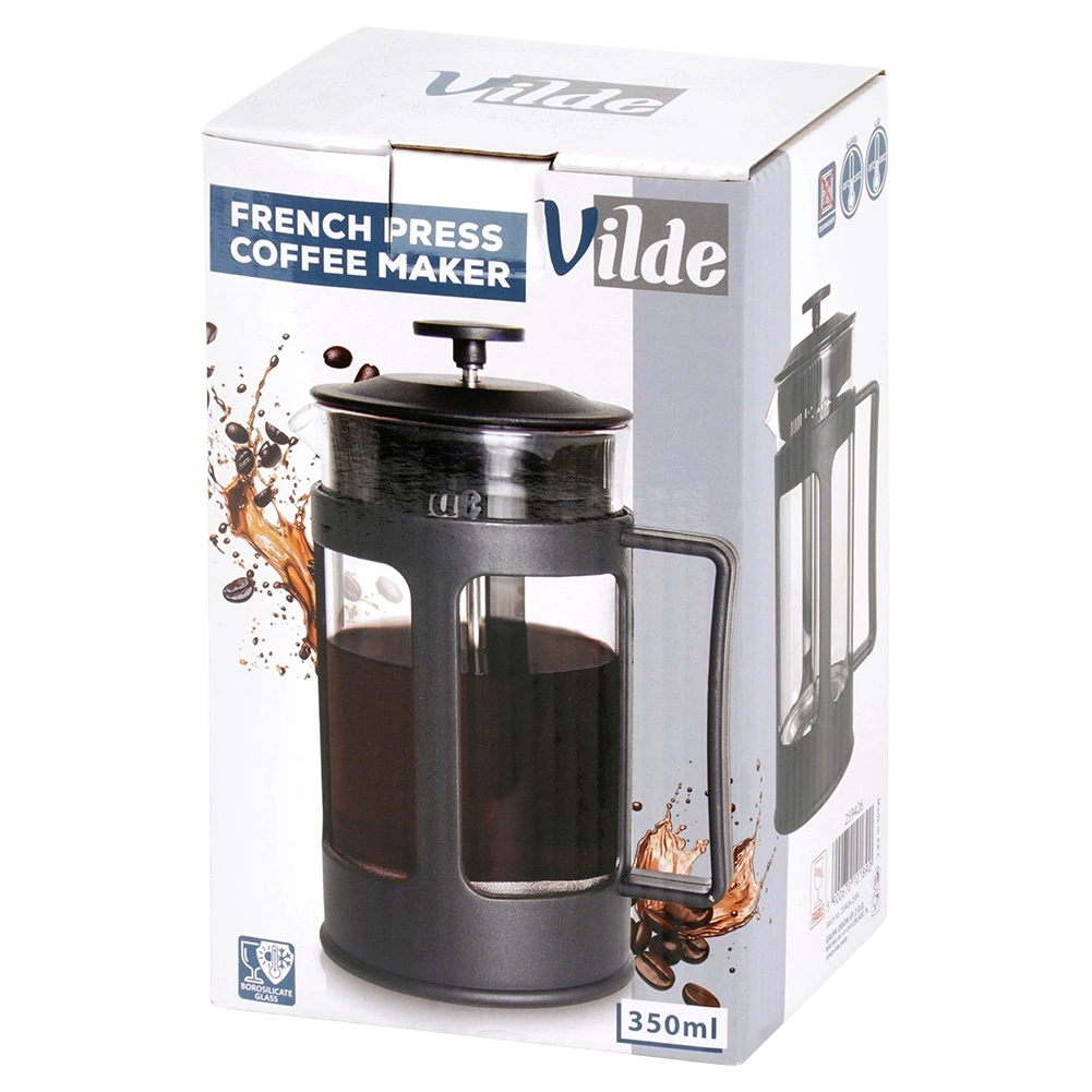 Praktični stakleni french press zapremnine 350 ml za brzu pripremu kave, čaja i biljnih napitaka. Zahvaljujući borosilikatnom staklu i nehrđajućem klipu s mrežicom dobit ćete čist, pun napitak bez taloga. Ergonomska ručka i precizan izljevni grlić osiguravaju udobno posluživanje. Pogodan i za pjenjenje mlijeka za cappuccino ili latte.