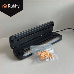 RUHHY vakuumski zavarivač olakšava kućno pakiranje hrane, smanjuje rasipanje i produljuje svježinu mesa, sireva, povrća i mariniranih jela. Snažna vakuumska pumpa 80 kPa sa snagom 110 W i protokom 9 l/min stvara profesionalne, hermetičke zavare u nekoliko sekundi. Pregledni LED indikatori i jednostavno upravljanje osiguravaju pouzdan rezultat svaki put.