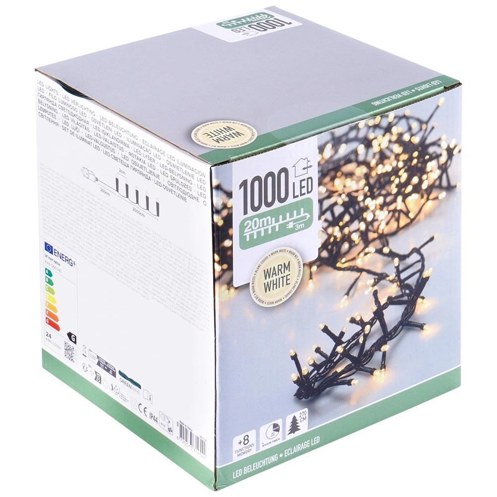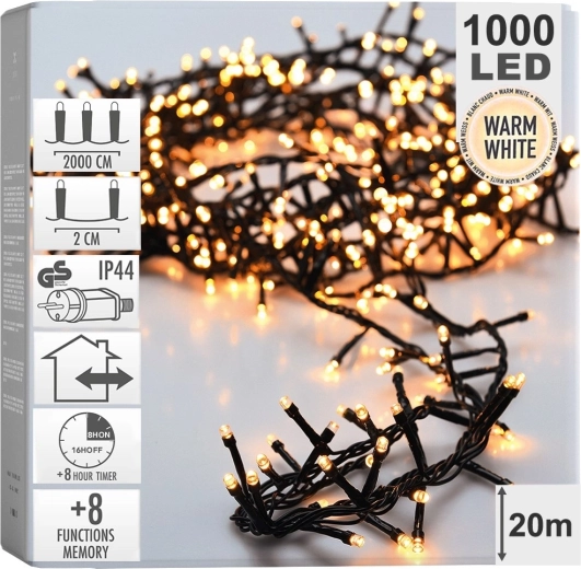 Zahvaljujući 1000 LED s razmakom od 2 cm dobivate gusto i ravnomjerno osvjetljenje. Odaberite između 8 efekata – od nježnog svjetlucanja do dinamičnog treperenja – i iskoristite memoriju posljednjeg režima. Timer osigurava automatsko gašenje nakon 6 sati i ponovno paljenje nakon 18 sati, čime štedi energiju i vaše vrijeme.