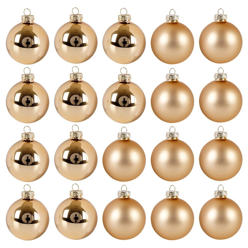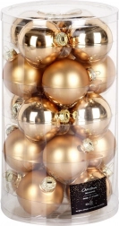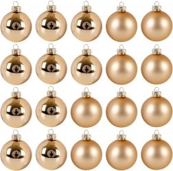 Obogatite božićno drvce stilskim setom zlatnih staklenih ukrasa koji djeluju bezvremenski i elegantno. Zahvaljujući kombinaciji 10 sjajnih i 10 mat kuglica stvorit ćete harmoničan kontrast i lijepe odsjaje svjetla. Kvalitetno staklo naglašava premium izgled cijele dekoracije.