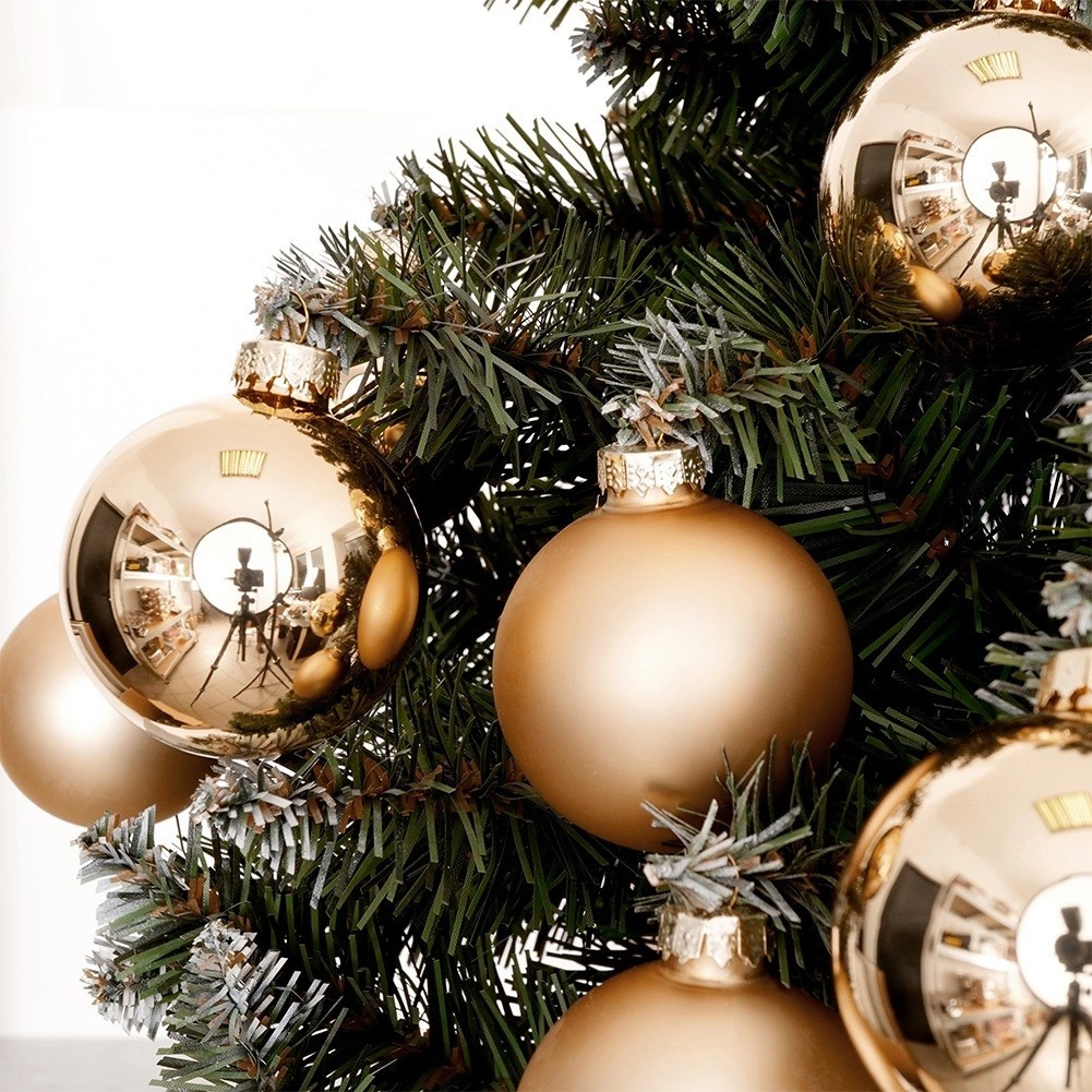 Univerzalna zlatna boja lako se slaže s prirodnom zelenom, crvenim akcentima i modernim kolor kombinacijama. Ukrasne kuglice prikladne su ne samo za božićno drvce, već i za vijence, girlande i blagdanske aranžmane u interijeru.