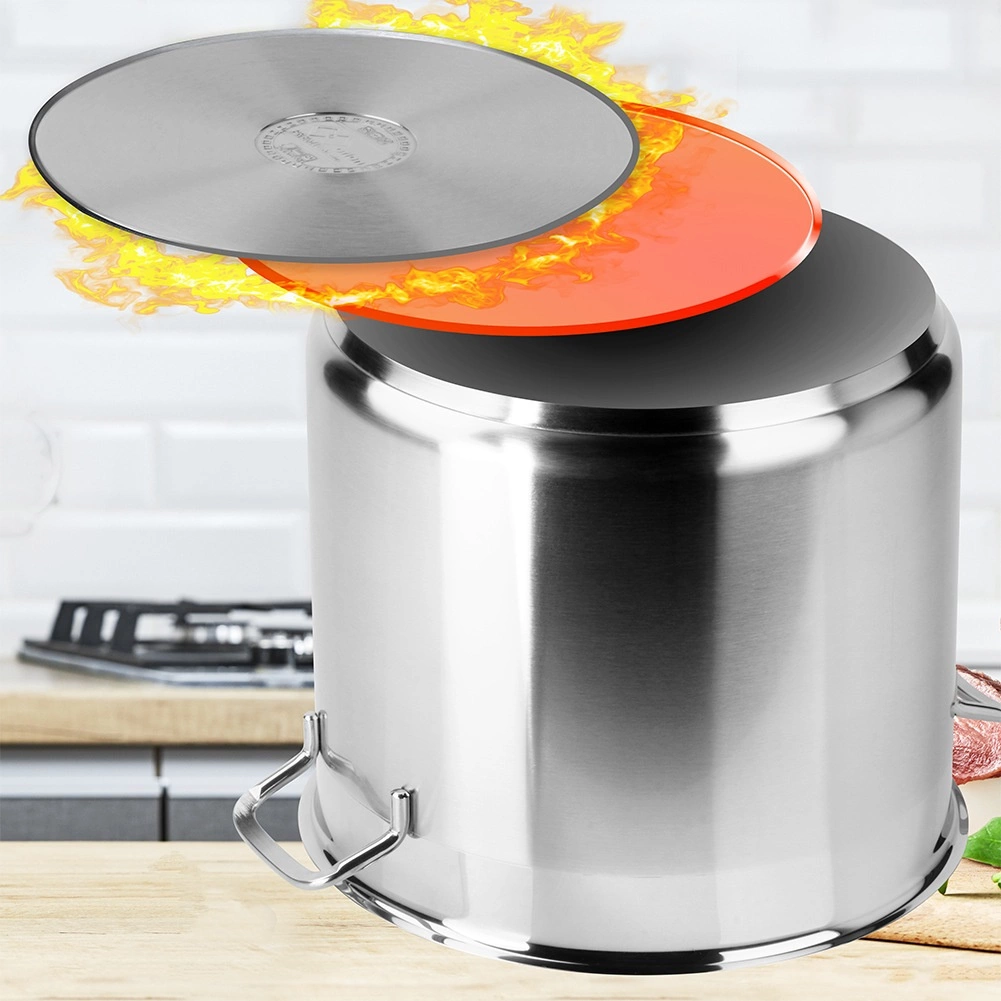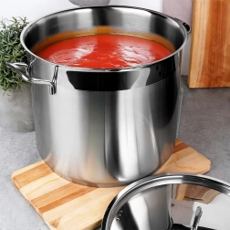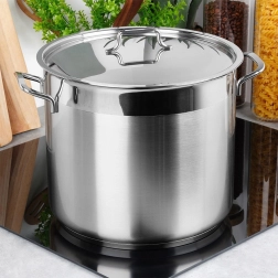 Idealan za velike porcije juha, temeljaca ili umaka. Precizno pristajući poklopac i širok promjer 28 cm olakšavaju kontrolu kuhanja i udobno miješanje.