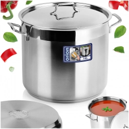 Nerezni lonac ANETT 28 cm nudi velikodušan volumen od 14 litara za juhe, temeljce, umake i zimnicu. Debelostijena izvedba od čelika 18/10 s mat površinom i sjajnim pojasom osigurava visoku otpornost, stabilnost i elegantan izgled u svakoj kuhinji. Višeslojno akutermičko dno izvrsno akumulira i ravnomjerno raspoređuje toplinu, pa kuhate brže i ekonomičnije.
