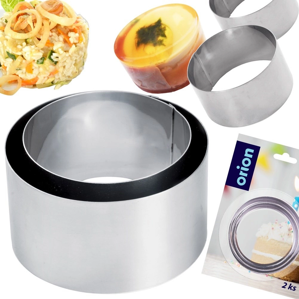 Set od dva prstena od nehrđajućeg čelika idealan je za pripremu tortica, tartaleta, slojevitih salata, riže, krumpira ili želea. Izdržljiv nehrđajući čelik jamči dug vijek trajanja, higijenu i stabilan oblik. Zahvaljujući dvjema veličinama postižete efektno porcioniranje i plating kao u profesionalnoj kuhinji.