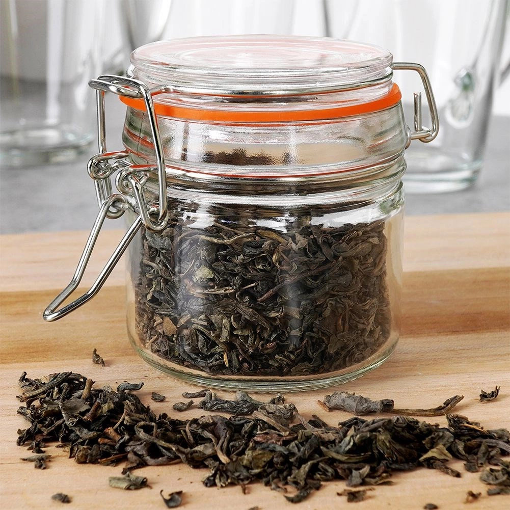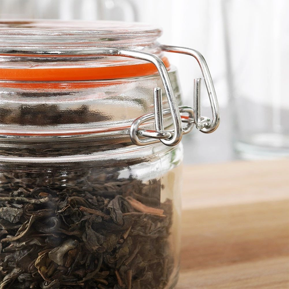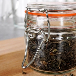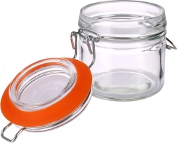 Ova elegantna i izdržljiva staklenka s patentnim zatvaračem odličan je izbor za svakodnevnu uporabu u kuhinji i kao poklon-ambalaža za domaće delicije. Pohranite začine, marmelade, med, piree i sitno voće – sve sigurno i pregledno zahvaljujući savršeno nepropusnom zatvaranju.