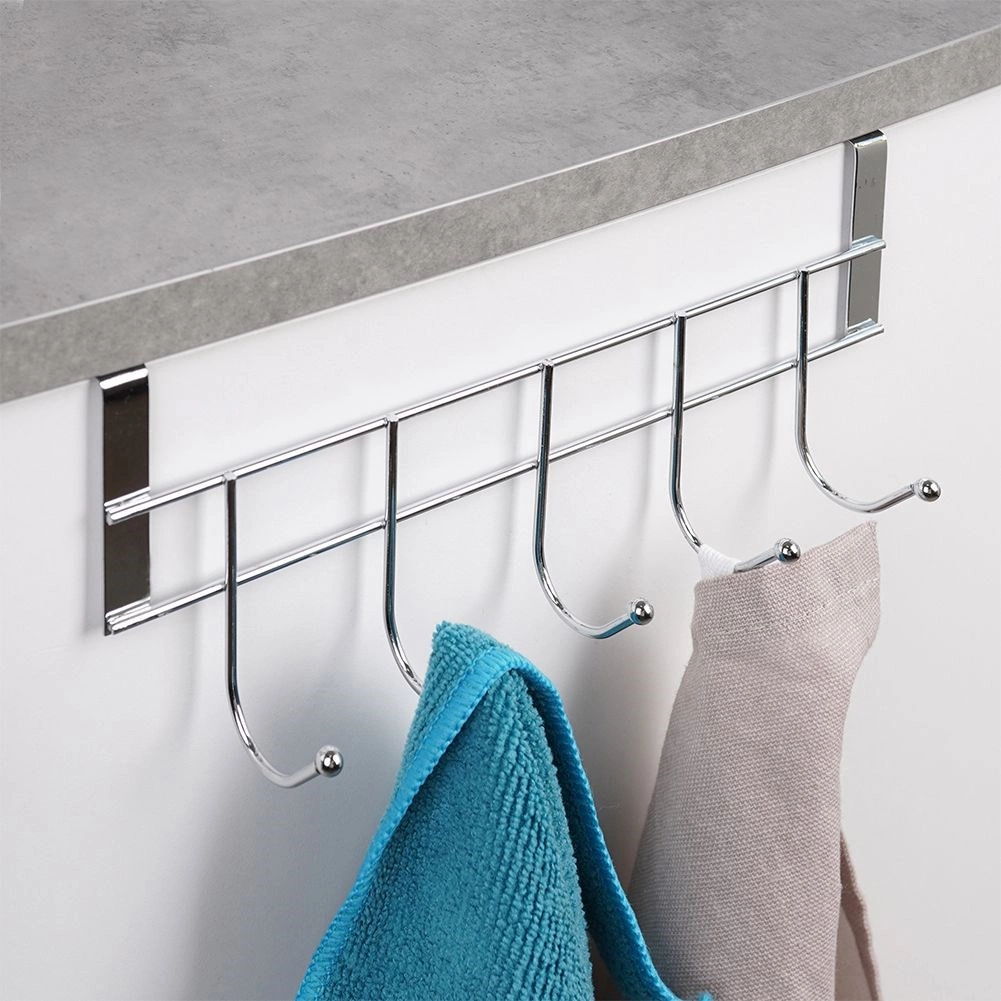 Zahvaljujući pet robusnih kukica lako ćete objesiti ručnike, odjeću, kuhinjske rukavice, krpe ili kozmetičke dodatke. Ugradnja je bez alata i bez bušenja – idealno za najam i brzo rješenje spremišnog prostora.
