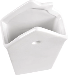Zahvaljujući kvalitetnoj keramici sa sjajnom bijelom glazurom djeluje vrlo elegantno, a ujedno je i jednostavan za održavanje. Minimalistički dekor kućice odgovara kuhinji, dnevnom boravku, spavaćoj sobi i dječjoj sobi. Jednostavno vješanje na metalnu kukicu olakšava svakodnevnu upotrebu.