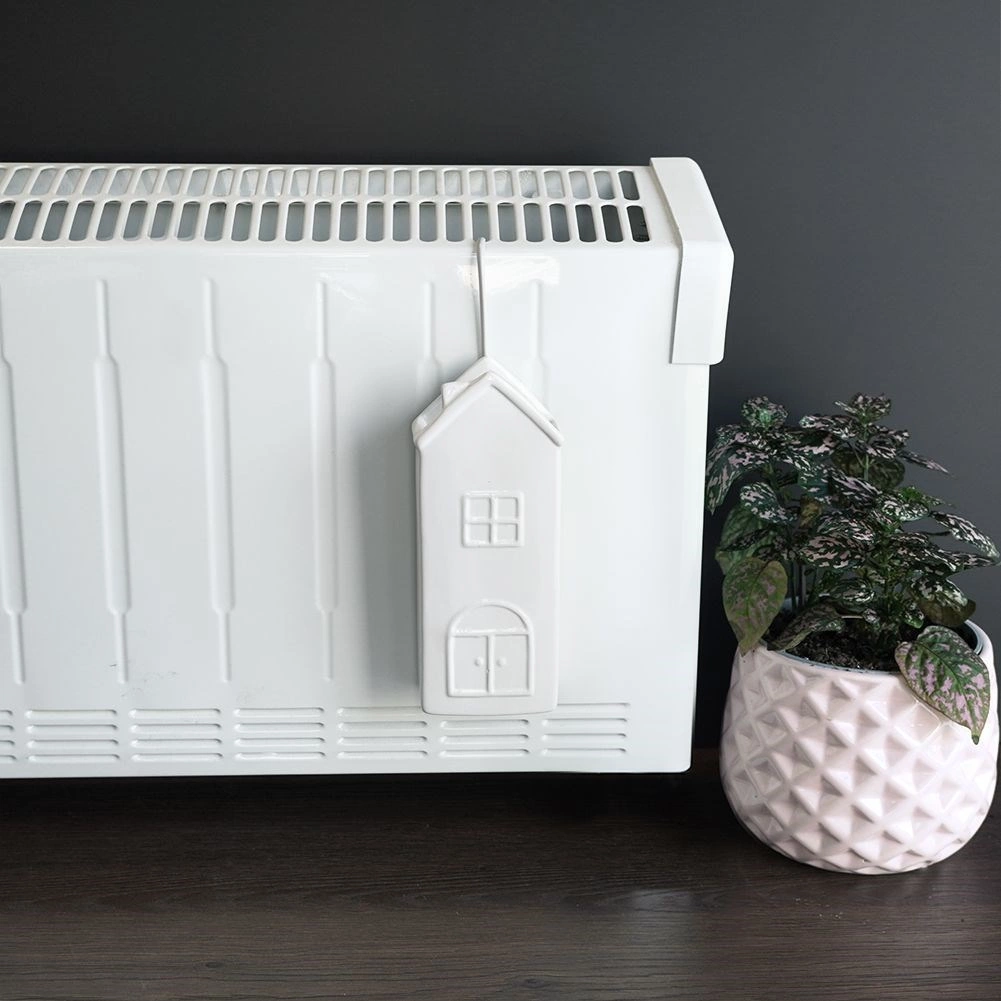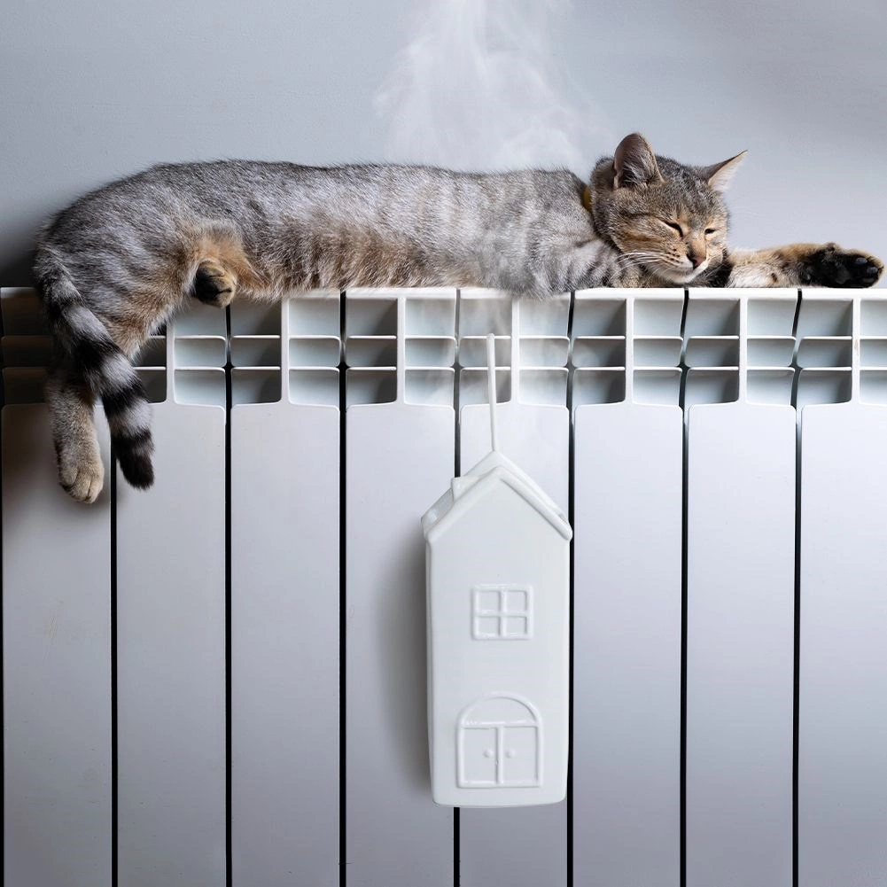 Praktičan i stilski ovlaživač zraka za radijator u obliku kućice idealan je pomoćnik za razdoblje suhog zraka tijekom grijanja. Dovoljno ga je napuniti vodom i objesiti na radijator – isparavajuća voda prirodno povećava vlažnost u prostoriji, što pridonosi ugodnijem okruženju za disanje i spavanje.