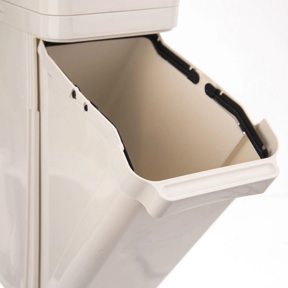 Unutarnji držači za vrećice čvrsto drže vrećicu na mjestu kako ne bi kliznula unutra. Izdržljiva izvedba od kvalitetne plastike u bež boji osigurava jednostavno održavanje i dugotrajnost. Idealno za razvrstavanje plastike, papira ili miješanog otpada u kućanstvu i radnom okruženju.
