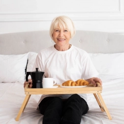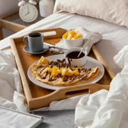 Sklopivi poslužavnik za doručak od kvalitetnog bambusa olakšava svakodnevne aktivnosti kod kuće. Možete ga koristiti za posluživanje doručka u krevet, opuštanje uz film, kao i kao stol za rad s laptopom ili tabletom. Zahvaljujući kompaktnim dimenzijama i sklopivoj konstrukciji lako se sprema i spreman je za uporabu u trenu.