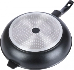 Granitna tava iz linije Grande spaja masivno aluminijsko tijelo s izdržljivim neprianjajućim slojem Pfluon Granit za zdravije kuhanje bez lijepljenja. Učinkovito provođenje topline skraćuje vrijeme pripreme i štedi energiju, dok ergonomska drška ostaje hladna i ugodna za držanje.
