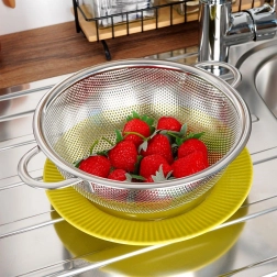 Cjedilo ANETT spaja funkcionalnost i izdržljivost u elegantnom izvedbenom obliku. Zahvaljujući obliku zdjele i finim perforacijama odlično je za svakodnevni rad u kuhinji – od ispiranja voća i povrća do praktičnog cijeđenja tjestenine, okruglica ili riže. Kvalitetni nehrđajući čelik jamči dug vijek trajanja i jednostavno održavanje.