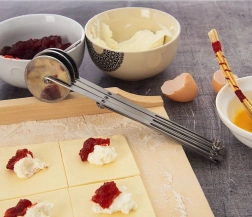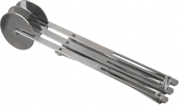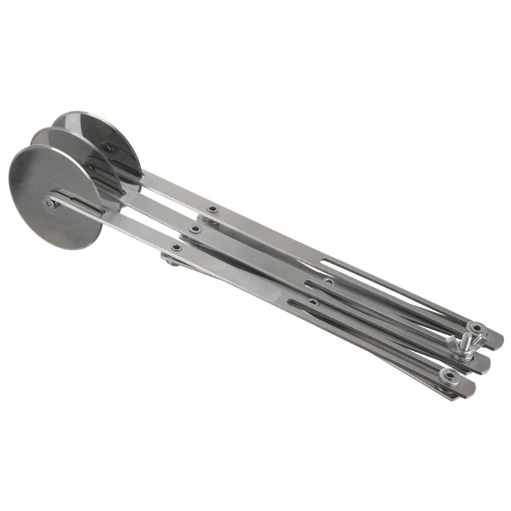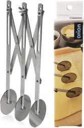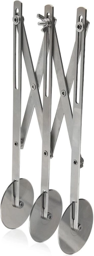 Trodijelni škare-rezač od nehrđajućeg čelika pouzdan je pomoćnik za kućno i profesionalno pečenje. Tri jednostrana glatka kotača promjera 5,5 cm osiguravaju čiste rezove bez trganja i lijepljenja tijesta. Duga ručka pruža siguran hvat i udobno vođenje.