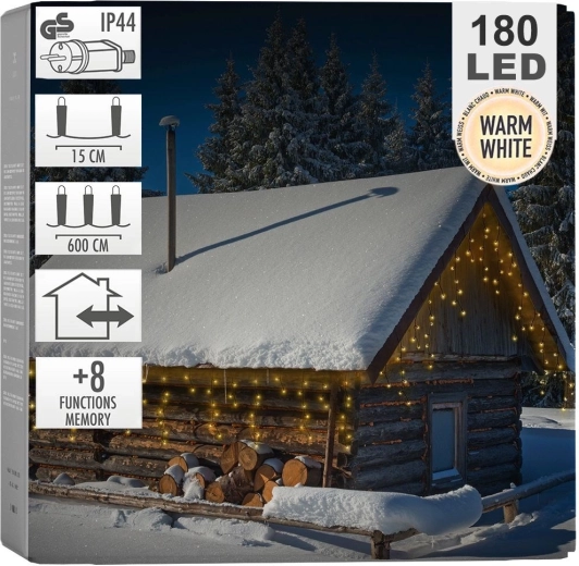 Stvorite čarobnu blagdansku atmosferu s vanjskom svjetlećom zavjesom duljine 5,85 m i visine cca 52 cm. Toplo bijele LED diode prostoru daju ugodnu, toplu svjetlost, a zahvaljujući zelenom kabelu instalacija djeluje nenametljivo na fasadi i među zelenilom.