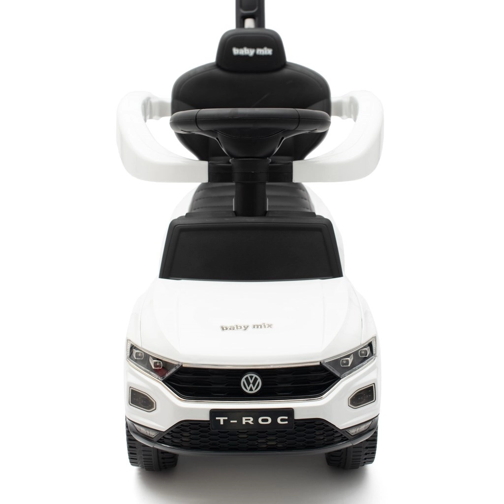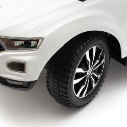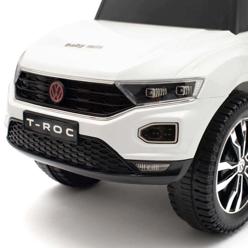 Licencirano guralo VOLKSWAGEN T-ROC u bijeloj boji oduševljava realističnim izgledom, kvalitetnom izradom i pažnjom na detalje. Pomaže razvijati motoriku i ravnotežu djeteta, a istovremeno pruža udobnu i sigurnu vožnju zahvaljujući širokom sjedalu s naslonom, zaštitnim elementima protiv prevrtanja i čvrstim plastičnim kotačima s metalnim osovinama.