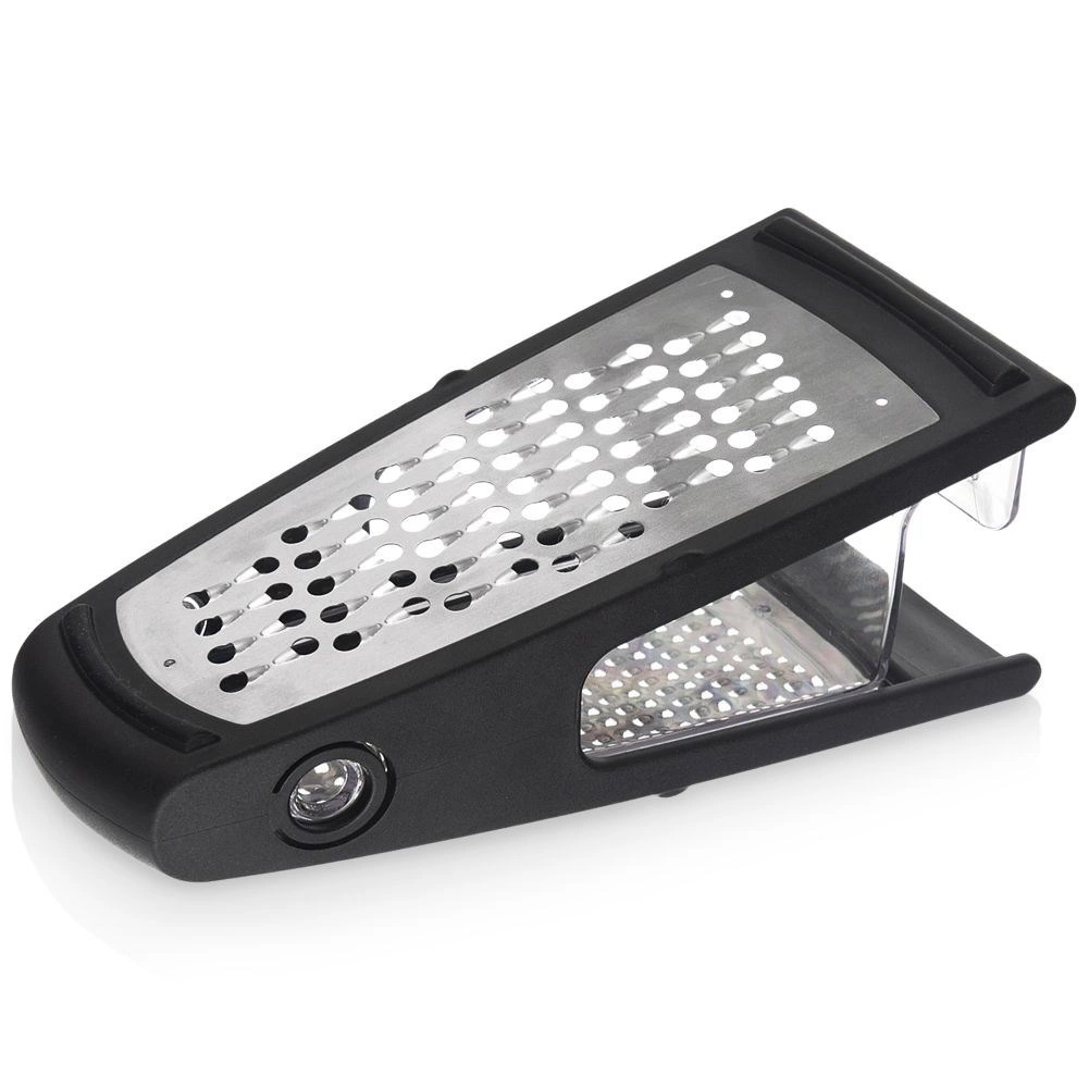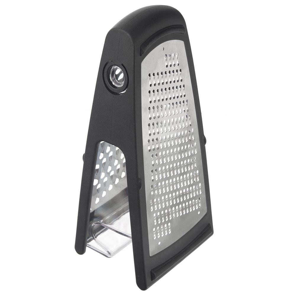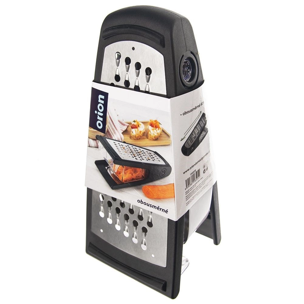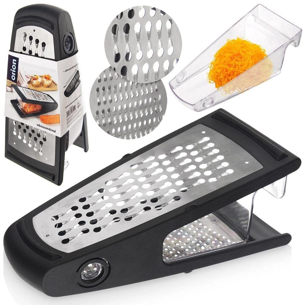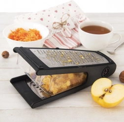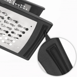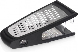 Univerzalni kuhinjski ribež s odvojivom prozirnom posudicom pojednostavljuje pripremu namirnica i održava radnu plohu čistom. Dvije različite ribajuće površine omogućuju savršen rezultat pri ribanju povrća, voća, sireva, čokolade i začina. Stabilni protuklizni završeci sprječavaju pomicanje tijekom rada.