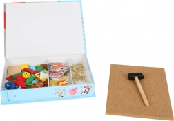 Plutna ploča, čekić, šareni dijelovi i pripremljene rupice za lako zakucavanje – sve u elegantnoj kutiji idealnoj za darivanje.