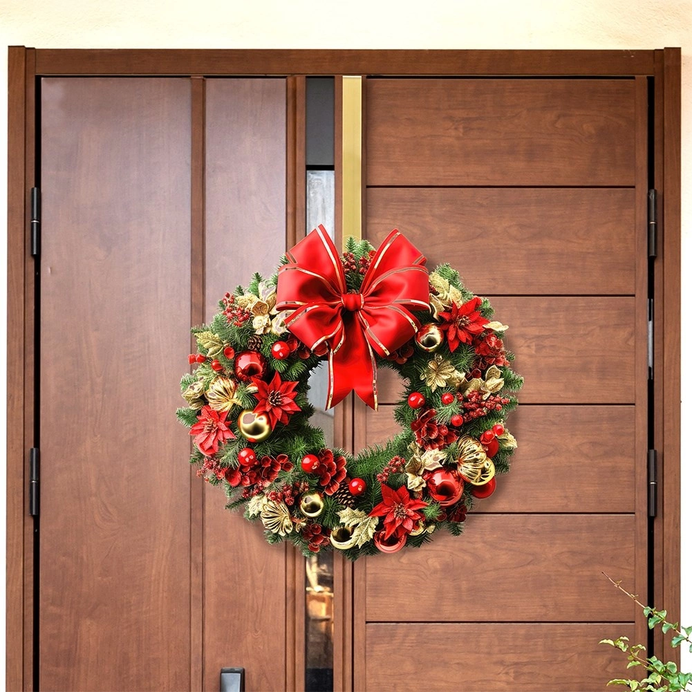 Unesite u svoj dom blagdansku atmosferu u nekoliko sekundi. Metalnu vješalicu u sjajno zlatnoj boji jednostavno postavite na gornji rub vrata – bez bušenja i bez lijepljenja. Stabilna konstrukcija sigurno drži vijence i druge viseće dekoracije, dok zlatna površina vašem ulazu daje reprezentativan dojam.