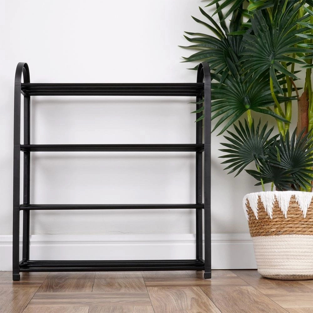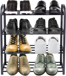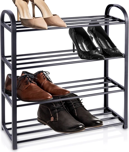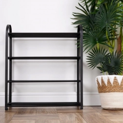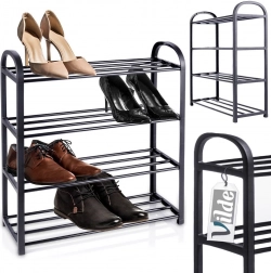 Održite red u obući s elegantnim crnim stalkom koji maksimizira vertikalni prostor. Četiri otvorene police s razmakom od oko 14,5 cm omogućuju lak pristup, dobro prozračivanje i brz pregled parova. Minimalistički dizajn uklapa se u moderne i klasične interijere.