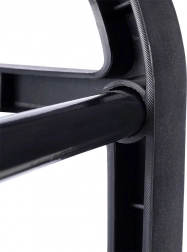 Robustan okvir od prašno lakiranog metala u kombinaciji s izdržljivim plastičnim bočnim stranicama osigurava stabilnost i dug vijek trajanja, a stalak je pritom lagan i lako prenosiv. Zahvaljujući maloj dubini stane i u manje prostore – prikladan za predsoblje, garažu ili podrum.