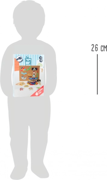 Otkrijte zabavnu igru za zakucavanje s piratskim motivima od small foot, koja potiče kreativnost, koncentraciju i finu motoriku. Zahvaljujući elastičnoj pluto ploči, zlatnim pribadačama i bogatom izboru drvenih elemenata djeca stvaraju jedinstvene slike. Praktična kutija za pohranu i četiri obostrane kartice s motivima osiguravaju lako spremanje i inspiraciju za stvaranje.