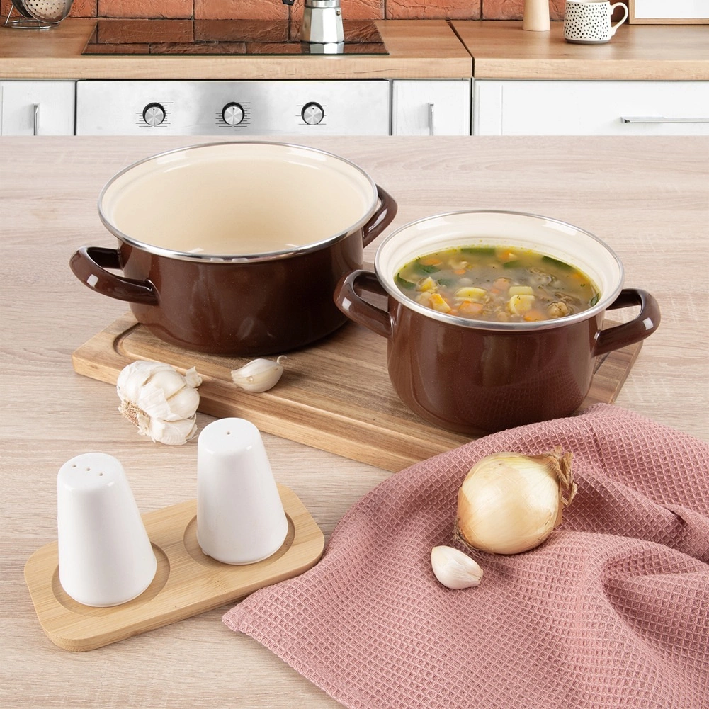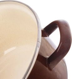 Emajlirani lonac retro stila iz serije Brown spaja izdržljivost, bezvremenski izgled i svakodnevnu praktičnost. Izvana je smeđi, iznutra kremasto bež, s ojačanim nehrđajućim rubom za dulji vijek trajanja. Odličan je za juhe, umake i priloge te poslužit će i za stilizirano posluživanje izravno na stolu.