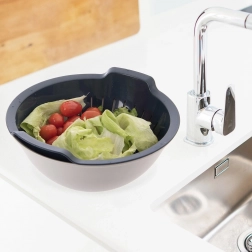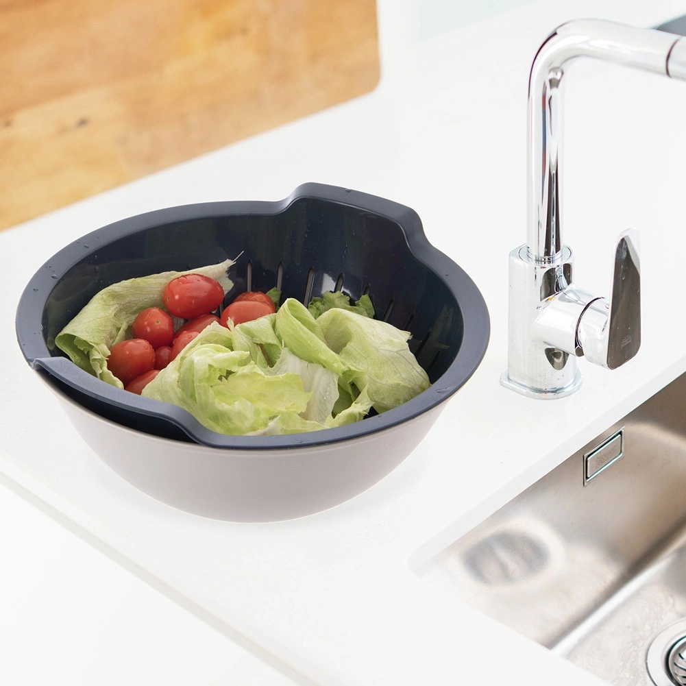 Oba dijela mogu se koristiti zajedno ili odvojeno: cjedilo za cijeđenje tjestenine, krumpira ili ispiranje salata i voća, zdjela za miješanje tijesta za palačinke, pripremu salata ili posluživanje. Materijal bez BPA je otporan do +95 °C, lako se čisti u perilici posuđa, a zdjela je prikladna i za mikrovalnu.