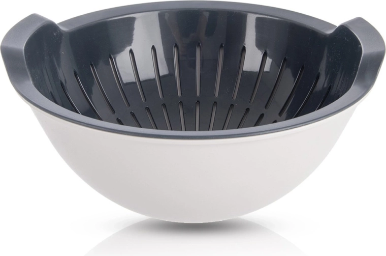 Praktičan set 2u1 cjedilo + zdjela olakšava svakodnevno pranje, ispiranje i cijeđenje voća, povrća ili tjestenine. Izvadivo cjedilo omogućuje da voda slobodno otječe u zdjelu, sve bez nereda. Izrađeno od kvalitetne plastike bez BPA, izdržljivo i lagano. Prikladno za perilicu posuđa, a zdjela i za mikrovalnu pećnicu.