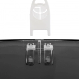 Prednji dio u prozirnoj mat izvedbi olakšava kontrolu zaliha, stražnji i donji dio u crnoj boji djeluju elegantno i jednostavni su za održavanje. U pakiranju se nalazi ključ za zaključavanje i montažni pribor za brzu instalaciju na zid.