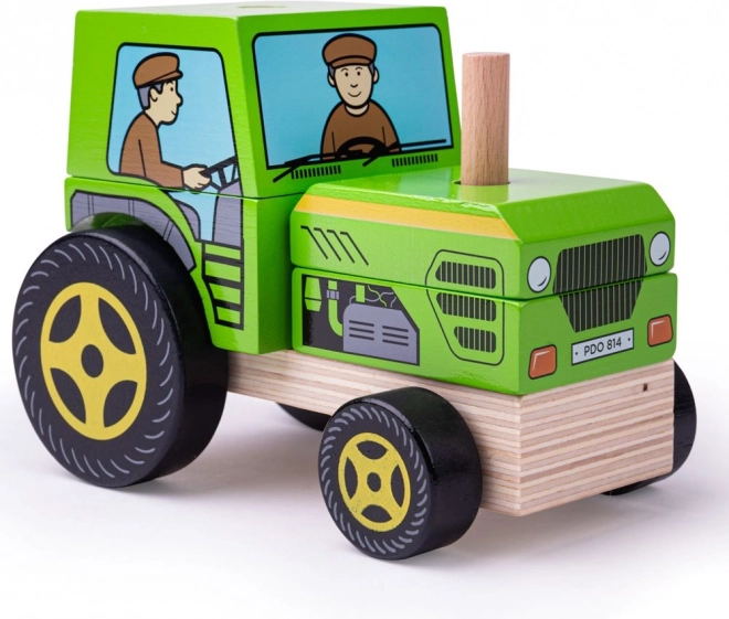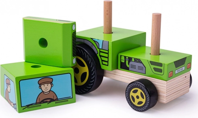 Ovaj drveni traktor BIGJIGS spaja slagalicu s vozilom za igru. Prije nego krene na “polje”, djeca moraju pravilno staviti i posložiti dijelove na štapiće, čime na zabavan način razvijaju logiku i strpljenje. Zahvaljujući pokretnim kotačima spreman je za vožnju po dječjoj sobi.
