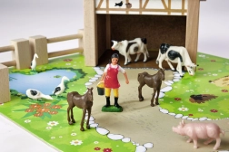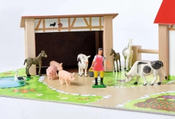 Djeca postaju mali farmeri: premještaju životinje u ograde, otvaraju vrata staje i brinu o vrtu. Drvena farma EICHHORN ističe se kvalitetnom izradom, ugodnim bojama i sigurnim materijalima za radosnu i dugotrajnu igru.