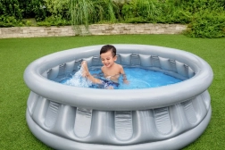 Napuhljivi bazen u obliku svemirskog broda donosi djeci mnogo ljetne zabave i ugodno osvježenje. Zahvaljujući mekom napuhljivom dnu i ugodnim stijenkama koje služe kao naslon, boravak u vodi udoban je i za najmlađe. Bazen se lako napuhuje i ispušta, pa je njegovo skladištenje i prenošenje vrlo jednostavno.