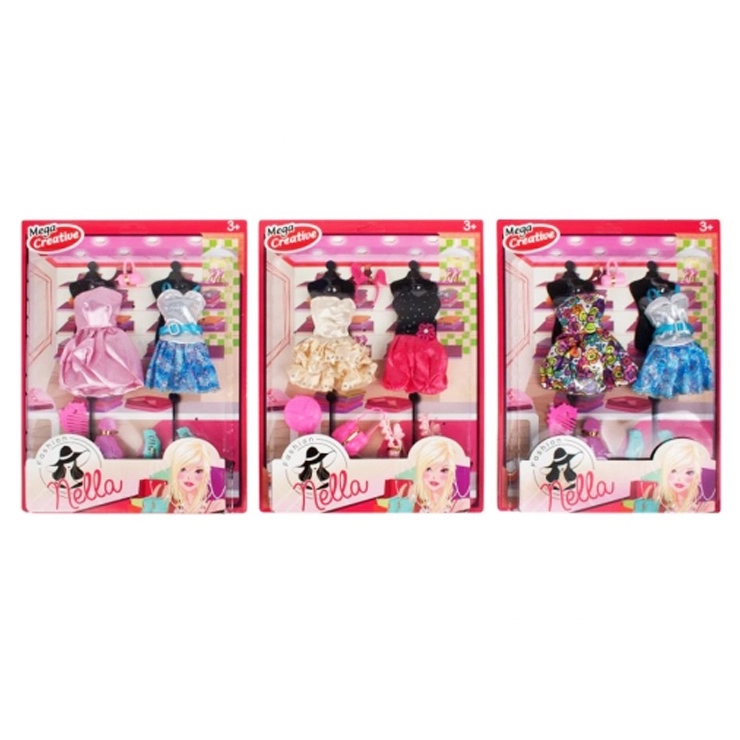 Ovaj raznobojni set za lutke donosi mnogo zabave i mogućnosti za stvaranje novih outfita. U pakiranju ćete pronaći dvoje haljina i izbor stilskih dodataka koji će upotpuniti svaki look – od cipela do torbice. Zahvaljujući kombinaciji plastike i tekstilnih materijala, komadi su lagani, ugodni na dodir i jednostavni za oblačenje.