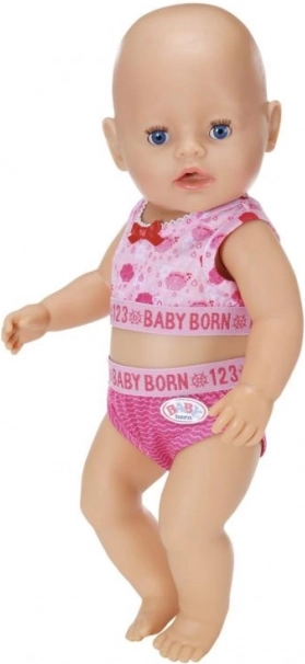 Stilno i udobno donje rublje za lutke BABY BORN 43 cm u dvije varijante – nježna ružičasta s motivom školjkica i svježa plava s kapljicama. Zahvaljujući elastičnim rubovima i promišljenom kroju, odjevni komadi se lako oblače i odlično stoje. Idealno za dugotrajnu kreativnu igru, lako presvlačenje i proširenje garderobe lutke.