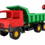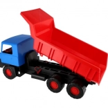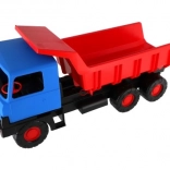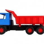 Naglasak na izdržljivosti i sigurnosti čini ga odličnim izborom za dugotrajnu upotrebu. Upečatljiva kombinacija boja (plava kabina i crvena korba) dodatno povećava privlačnost igračke te potiče razvoj mašte i motorike.