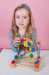 Dječji labirint s bubamarom brenda Bino idealna je prva motorička igračka. Šarene perlice u obliku životinjica i cvjetova pomiču se po metalnim žicama iznad drvene baze, što potiče strpljenje, koncentraciju i kroz igru razvija vještine mališana.