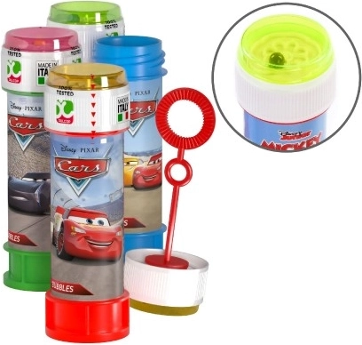 Balončeki s motivom Cars s kapacitetom od 60 ml donose puno zabave zahvaljujući šarenom poklopcu u kojem se skriva zabavna igra. Puhač je dio poklopca.