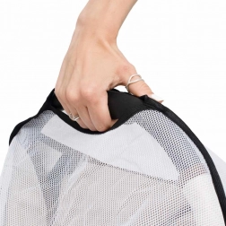 Zahvaljujući podesivoj elastičnoj traci mrežica se brzo i sigurno prilagođava različitim oblicima i veličinama autosjedalica. Jednostavna je za održavanje i izrađena od 100% poliestera, koji je izdržljiv i brzo se suši.