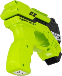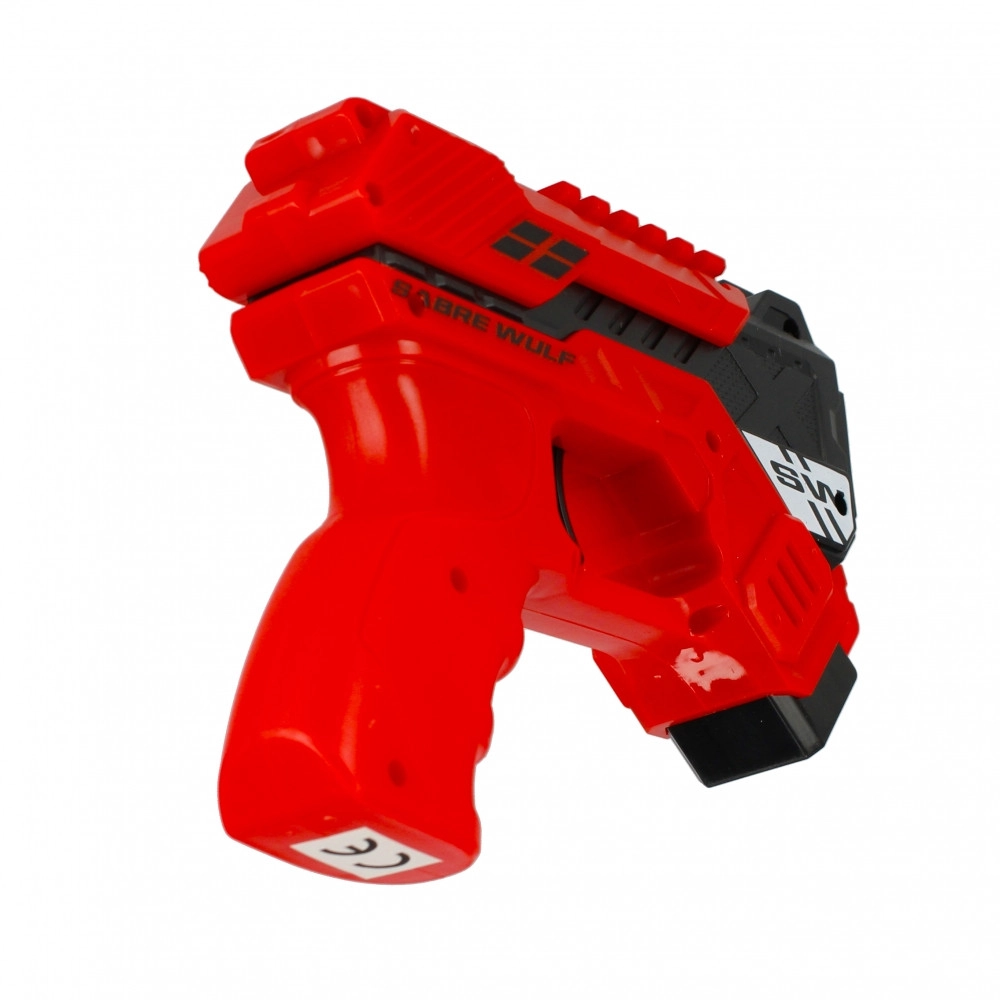 U pakiranju je 6 mekih pjenastih strelica koje su sigurne i prikladne za igru u zatvorenom i na otvorenom. Pištolj je dostupan u dvije atraktivne boje – crvenoj i zelenoj – i ističe se modernim “blaster” izgledom SABRE WULF.