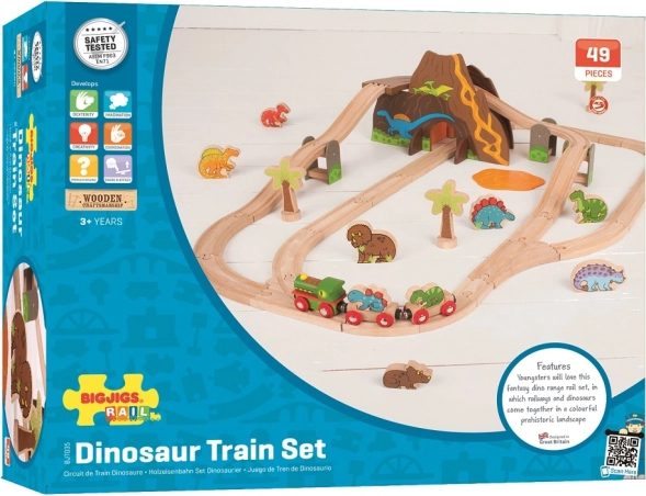 Drvena dinosaurovka BIGJIGS RAIL, 49 dijelova