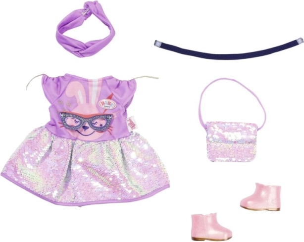 Savršeni outfit za vašu Baby Born lutku! Jednostavno obucite vašu omiljenu lutku u ove prekrasne haljine i masku i gledajte kako oživljava cijela igra. Izrađeno od kvalitetnih materijala, koji osiguravaju izdržljivost i udobnost za lutku. Idealno za poticanje kreativnosti i igre uloga, ovaj modni set donosi radost svakoj maloj modnoj divi.